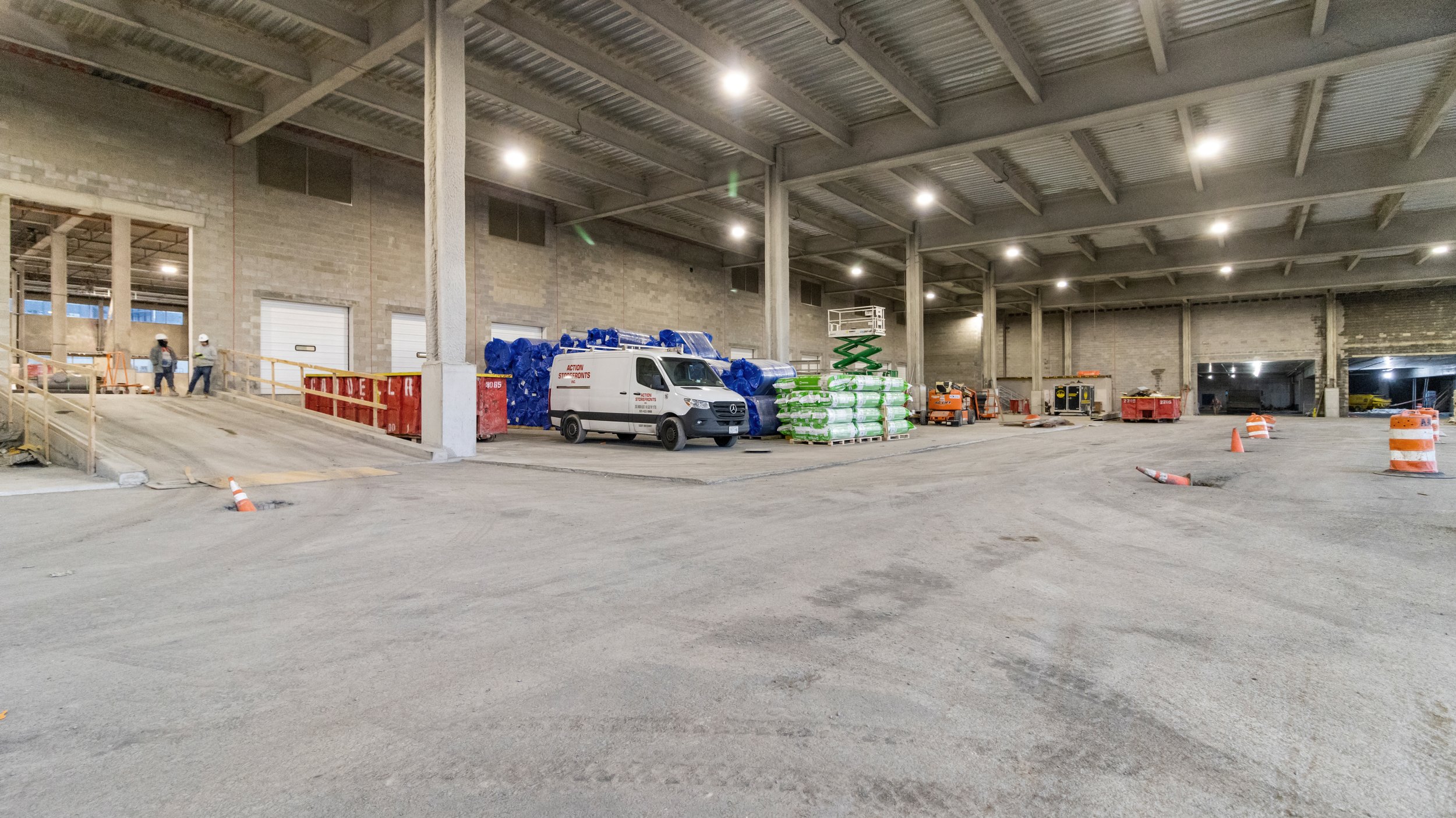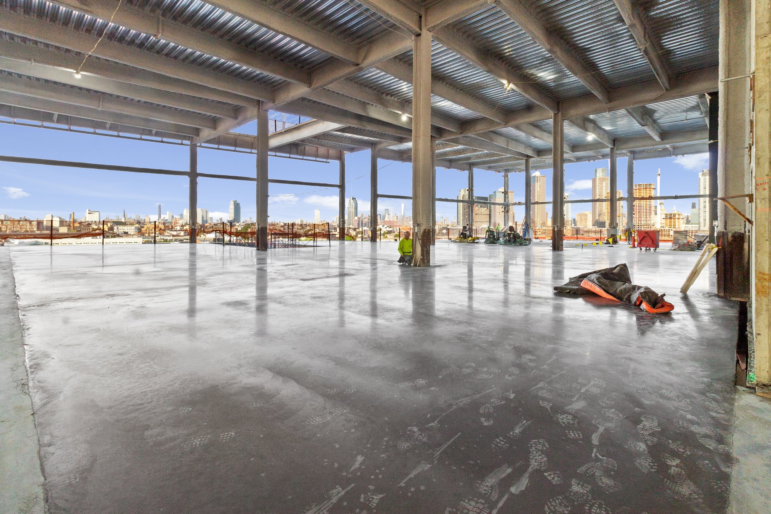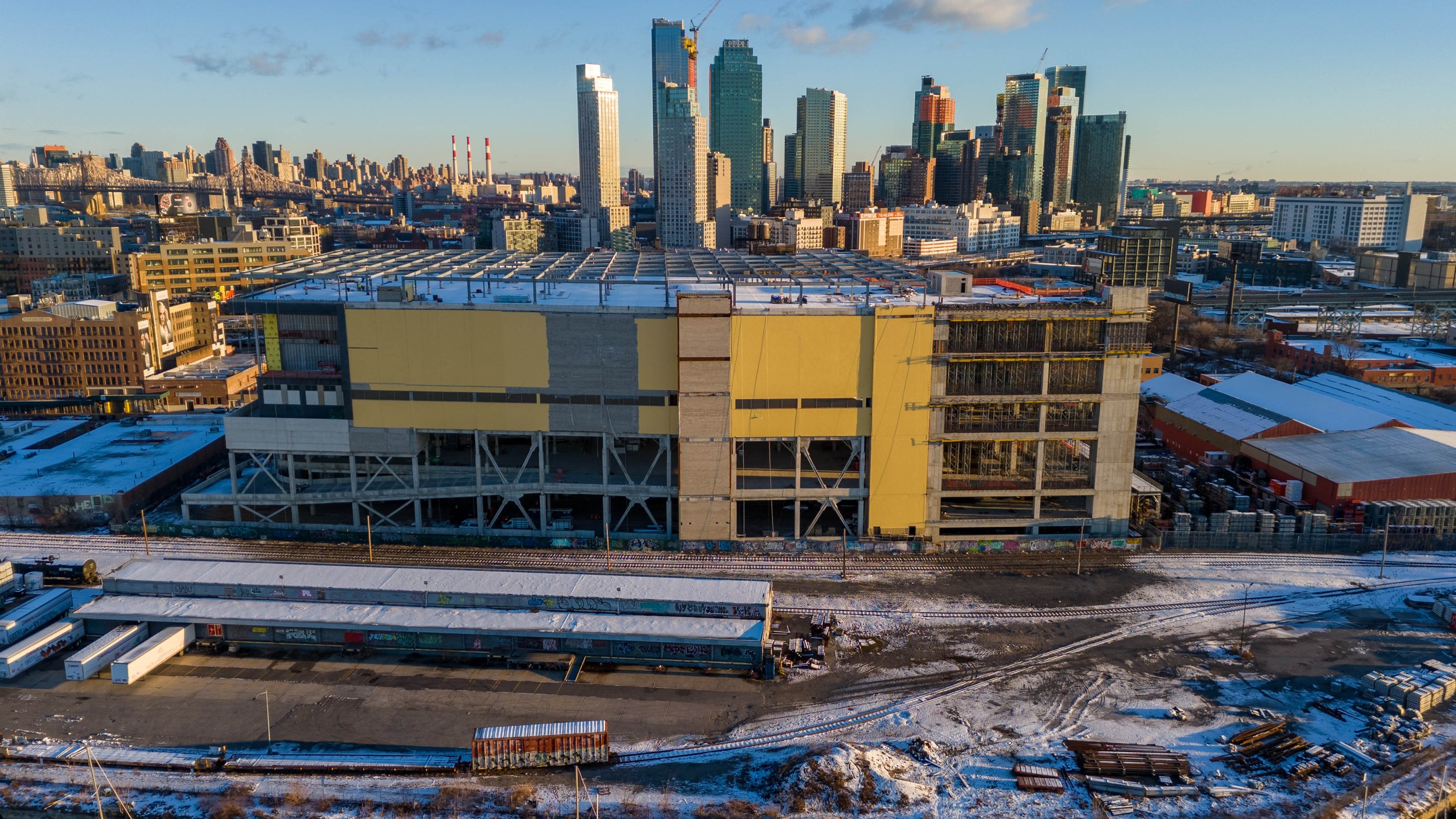 Borden Ave is a 166-foot-tall structure that will span 840,000 square feet and house logistics and warehouse space featuring truck courts, a distribution center, two stories of film and television studios, office space, and on-site vertical parking. The upper floors feature larger windows and multiple orange-framed cutouts that make way for outdoor terraces. The structure is capped with a parking deck covered with a roof of photovoltaic panels. An L-shaped service ramp is positioned on the southwestern corner, and the main entrance will be located on the north side facing Borden Avenue.